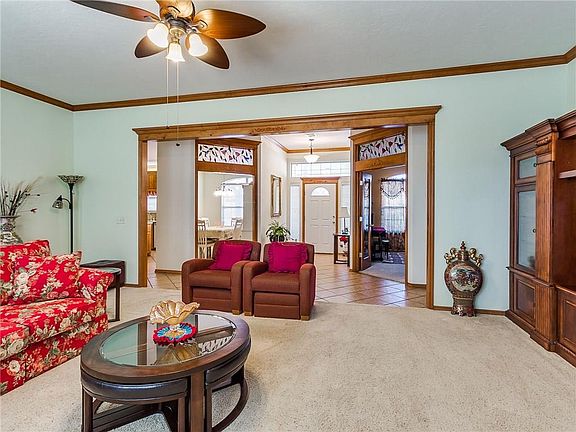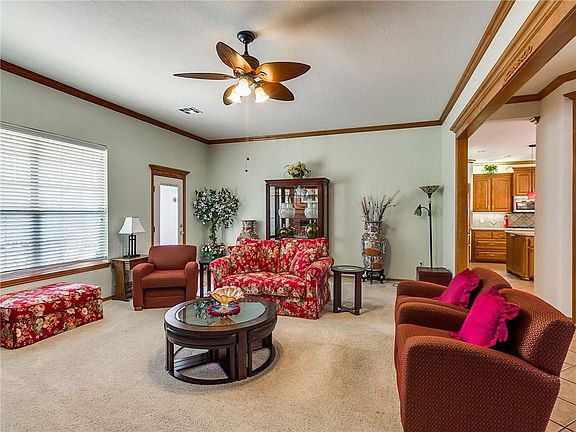 Welcome home to DEERFIELD! This property is just off I-40 in a small community where the lots are large! Walk in to an open family room, with a great fireplace focal point. Upon entry of the corridor; to the left is a large office or den. To the right, walk into an open kitchen concept with stainless steel appliances and a center island where family or friends can join the cook. This home boasts with a large dining area and fabulous natural lighting. The large master bedroom and bath is on one side and two beds and a bath on the opposite side of the home. The laundry room is off the kitchen and the leads into an oversized three bay garage; cellar is in the third bay. There is an extra concrete pad where one can park an RV or boat. The covered patio is large overlooking the greenbelt. This home is immaculate and move in ready. Available April 1, 2020. Come home to your private oasis.