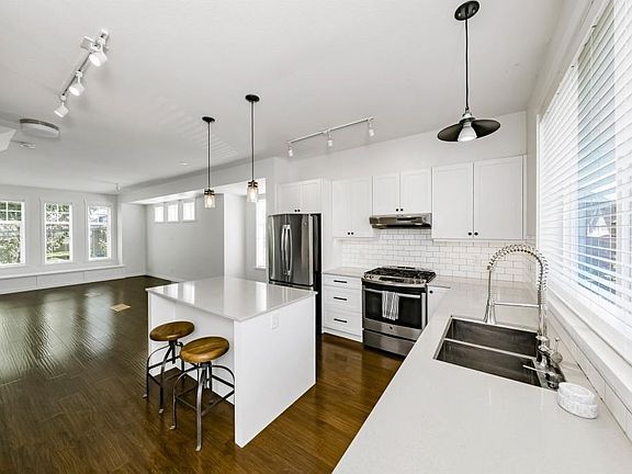 Welcome to popular Cambridge Walk! This bright, end-unit ROWHOME features abundant windows and timeless interior finishes throughout an open-concept space in the friendly neighborhood of Sullivan. Walking distance to schools, shopping & YMCA. Kitchen is made for entertaining w/ generous counter space, island seating, beverage venter, and a large pantry. Powder room is private & situated on the main floor. Large main bedroom with double vanity in ensuite + walk-in closet w/ additional 2 bedrooms upstairs. Abundance of closet and storage space is located throughout this home. Bedroom on main level can be used as a flex room, w/ full bathroom; perfect for a guest/office or extra bedroom w/ separate entrance. Private backyard w/ detached double garage.