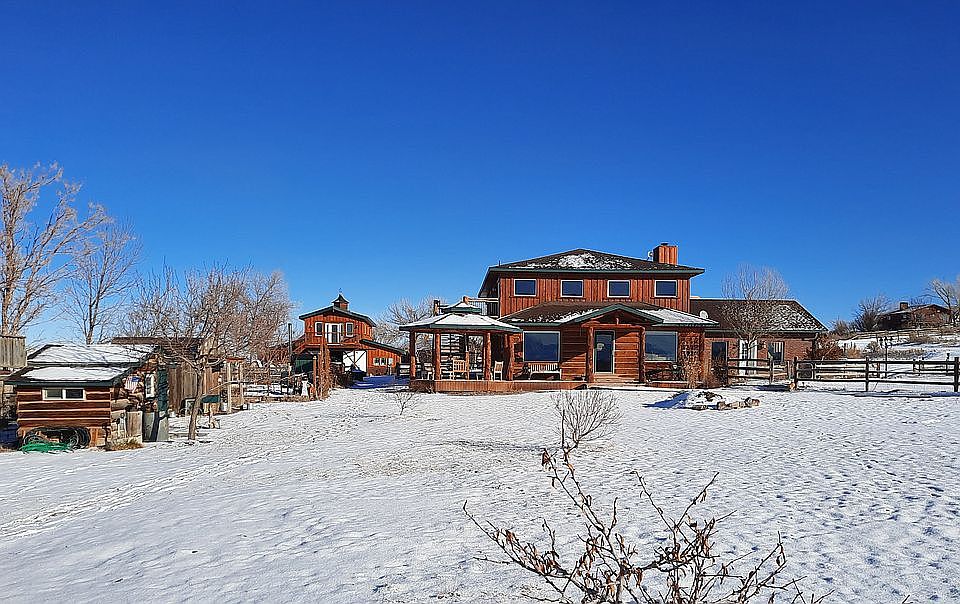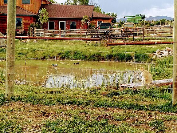 This unique property is a spacious 2 story log sided house with the possibility of an Airbnb and Mother-In-Law suite w/private entrance. The Barn has an Apt above and below are living quarters w/kitchenette, tack/bathroom. There are 4 stalls with heated automatic horse waterers and outside runs. Both main house and barn have in-floor heat that can be heated with the outside wood boiler or with propane. There is a central vac system in the house. Other out buildings include a log cabin and a chicken coop w/outside run. The property has 3/4 shares of Irrigation water and pond. Beautiful unobstructed Mountain Views!