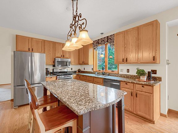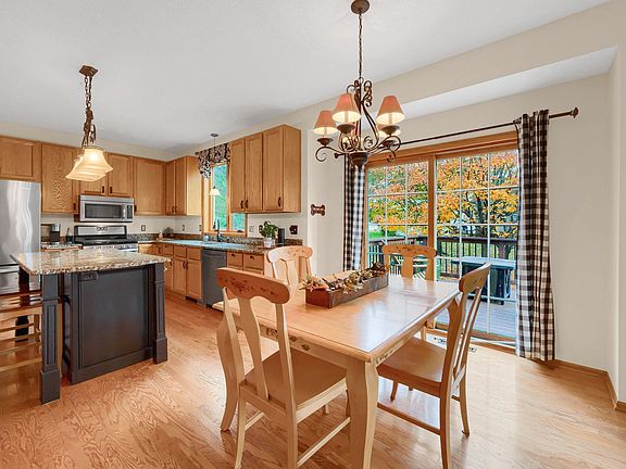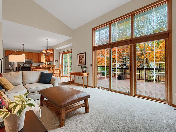 overlooks flat backyard with mature trees. Inside this home features many comfortable living and entertaining spaces! Main floor offers a large kitchen with granite countertops, stainless steel appliances and convenient pantry closet. The kitchen flows into the bright informal dining area and family room, with a wall of windows and access to the large deck. Separate living and dining rooms offer plenty of entertaining space for family and friends. Spacious main floor den makes working from home easy. 4 nice size bedrooms on the upper level, each with walk-in closet. Primary bedroom features a full private bath, dual sinks, separate tub and shower and 2 walk-in closets. Finished lower level offers amusement/game area, flex/workout area and 3/4 bath. Plenty of storage throughout home including the lower level crawl space.