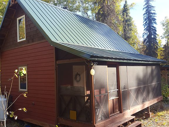 SUSITNA SHORES!! Fantastic weekend getaway! Or live inexpensively year round! Fully equipped with two heat sources, on demand hot water, 2 bedrooms up, even has a washer/dryer! Large campfire pit in the middle of the front yard. Circular Driveway, loads of room for parking, large storage shed, & garden areas. FEEL SAFE HERE - gated community w/gate at the driveway, PLUS SU RIVER PRIVATE ACCESS!!