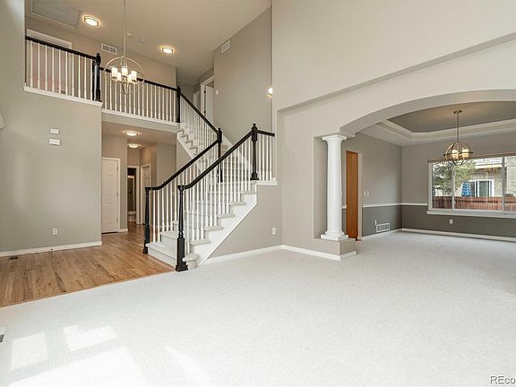 Welcome to your new home nestled in the private enclave of Orchard Valley! This neighborhood is surrounded by Cherry Creek State Park and all the amenities: biking and walking/running trails, highly rated Cherry Creek Dog Park is fun for canines and owners, and the community pool and BBQ area are perfect for relaxing weekends. With 6 bedrooms and a fully finished basement, this home has all the private and WFH space anyone could need. Luxuriously plush carpet throughout the main and upper levels, with newly refinished hardwood floors in the entry, kitchen and nook. Formal living room and dining room are light and bright and are perfect for entertaining family and friends. The family room has an elegant wall of contemporary tile and a fireplace that can cozy up the space, or just lend a modern ambiance with its color changing flames. The kitchen boasts newer stainless steel appliances, marble-esque solid surface countertops, maple cabinets with sparkling tile backsplash, spacious pantry, as well as countertop seating and breakfast nook! Main floor bedroom can be used as an office or as a separate guest space, along with a 3/4 hall bath. The upper level features a set of double doors leading into the primary suite: a spacious and light bedroom, 5-pc bath with euro shower door and soaking tub, and a huge closet with cedar flooring. Secondary bedrooms include a tree mural en suite with 3/4 bath, and two more bedrooms sharing a Jack & Jill bath. The fully finished basement is finished with a mother-in-law suite and mini-kitchen, a bathroom with jacuzzi tub, huge recreation space, and a tiled area perfect for a craft room or workout space. Top of the line water purification system throughout the home! 3-car garage features a 50-amp electric car charger! Outdoor space features a concrete patio with brick accents, privacy shrubs. Leviton Smart Switches for lighting in the main areas throughout the home. Don't hesitate, make this home yours today!