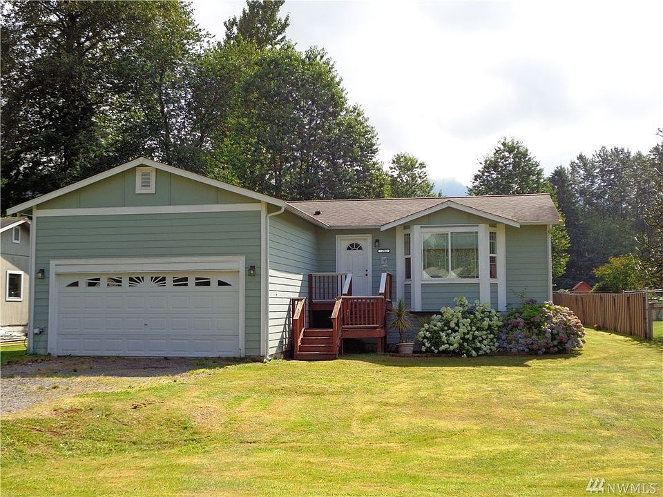 Amazing Mountain view from a private back deck for your outdoor enjoyment. This lovely 1 story 3 bedroom home built in 2010 with attached 2 car garage sits on a huge 13504 square Ft. fenced lot. Open concept living room with vaulted ceiling & kitchen with eating space. Master with continental bath. Conveniently located on the west side of Gold Bar close to town and Hwy 2. Trail access to Wallace River is nearby for hiking & fishing, and a short drive up to the mountain in winter for skiing.
