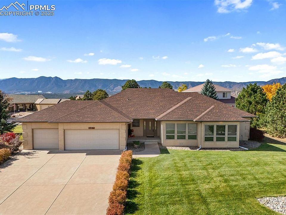 Step Into This Spectacular Custom Home in Gleneagle w Stunning Mountain Views! Spacious & Inviting Entry Welcomes You Home. Open Great Room is the Heart of the Home w Gas Fireplace & Raised Hearth & Mountain & Air Force Academy Views & Walk Out to Oversized Covered Deck. Bask in Abundant Natural Light thru Wood Clad Awning Windows. Entertain w Ease in Formal Dining Area. Move Into the Large Kitchen Complete w Center Island, New Double Oven Range & Built-in Microwave, Refrigerator, Tons of Cabinet & Counter Space w Pull Out Shelves, 2 Pantries, Tile Flooring, Casual Dining Area Framed w Sunshine & Walk Out to Deck. Main Level Laundry Room Has a Closet, Cabinets & Folding Counter Turning a Chore into Pleasure. Oversized Primary Bedroom is a Dream w Large Windows to Enjoy the Views, Walk-in Closet Plus Two Additional Closets, Dressing Area w Vanity & Large Adjoining Bathroom w Jetted Tub & Shower. Two Additional Main Level Bedrooms w Deep Closets & Share a Full Bath w Linen Closet. A Half Bath Completes the Main Level. Garden Level Basement Includes a Large Family Room w Potential Office Space w Built-in Cabinets, Shelves & Desk. Storage Closets. Two Unfinished Areas are Primed & Plumbed for 2-3 Additional Bedrooms & Bathrooms or Whatever Fits Your Lifestyle. Other Features Include Large Covered Front Porch & Back Deck, Blinds, Finished Oversized 3-Car Garage w Shelving, Workbench, Service Door & 30 Amp RV Outlet, Brand New Roof, Exterior Soffits Painted, Gas Outlet on Deck, Interior Paint Refreshed, Brand New Double Oven Range & Built-in Microwave, Solid Wood Interior Doors, All Ducts & Carpets Professionally Cleaned, Furnace, A/C & Water Heater Inspected, Sump Pump, Gas Outlets in Laundry Rm & Basement, Landscaped Yard on .4918 Acres w Auto Sprinklers & So Much More! Located Near D20 Schools, Shopping, I-25, Denver, Military Bases & Hospitals. This Home Offers the Best of Colorado Living – Space, Comfort & Unforgettable Mountain Views!