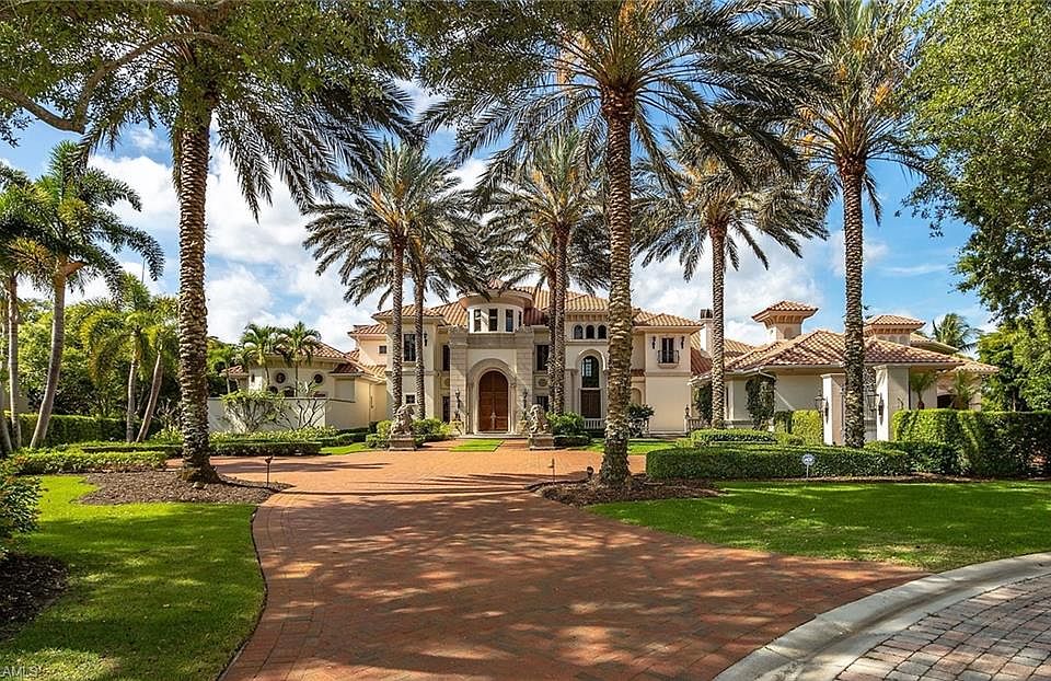 Located within prestigious Mediterranean Golf & Country Club on a premium expansive lot sits a one-of-a-kind masterpiece. Meet "Sienna". Siena's old-world charm rivals any city in Europe. This Tuscan inspired paradise is truly special. From the intricate imported Italian frescos to the stone walls and wine cellars, there may not be a more authentic home like this in Naples. Every detail was handpicked perfectly combining Renaissance elements with modern living amenities. This home radiates a warm and welcoming ambiance. This 16,000+ total sq ft home was built for entertaining and includes separate living area for guests, extended family, or staff to help you manage your home. Some of its features include 3 covered balconies with expansive golf and lake views, multiple fireplaces, 2 wine cellars, elevator, media room, gourmet kitchen, 7 car a/c garage and sprawling outdoor covered entertaining areas adjoining a relaxing retreat next to your tropical pool and spa just to mention a few. Luxury living here is at its finest both indoors and out!