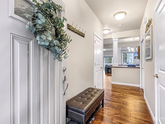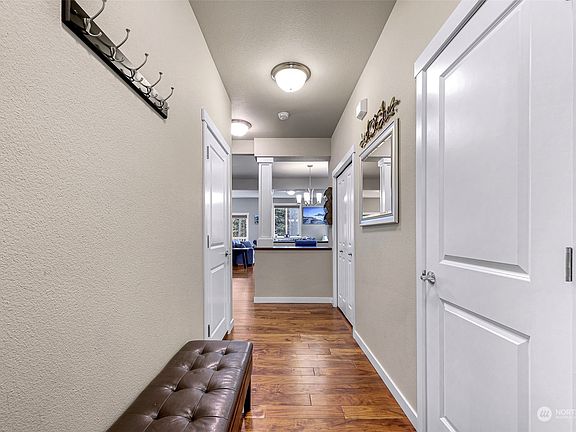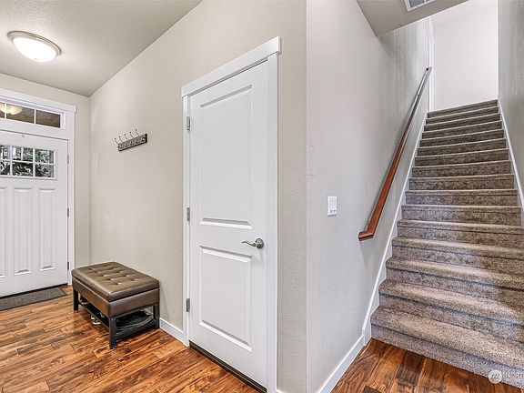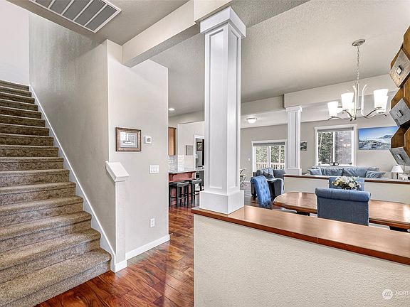 Beautiful upscale home on large lot with a view of Mt. Erie. Just 10 minutes from downtown Anacortes and 7 miles from NAS Whidbey Naval Base. Interior features slab granite counters, full height subway tile backsplash, custom maple cabinets, hardwood floors, White Painted millwork, wood pillars, wood wrapped windows, white painted doors, and stainless steel appliances. Open floor plan with large living spaces and a huge primary bedroom with 5 piece bath and giant walk in closet. Efficient tankless hot water and newly installed heat pump.