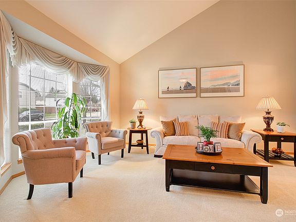 Wonderful Silver Firs Community & Great Home on a Greenbelt. 4 bedroom, 2.5 baths, open liv & dining rooms. Vaulted ceiling in the living rm brings in lots of light w/ this west facing home. Large eat-in kitchen family rm space. Granite counters, center island, pantry & garden window. Family rm w/gas fireplace & French Doors to beautiful backyard, easy-care synthetic deck, built-in fire pit (natural gas hook up), hot tub & greenbelt privacy & views. Primary suite w/update bath- tile floors, quartz counter top & jetted tub. Walk-in closet w/CA closet system. 3 extra bdrms, 1 w/walk-in closet. Guest bath w/quartz counter & tile flooring. 50 yr roof, AC/heat pump, high eff furnace, sprinkler system. Neighborhood parks & trails. Great schools