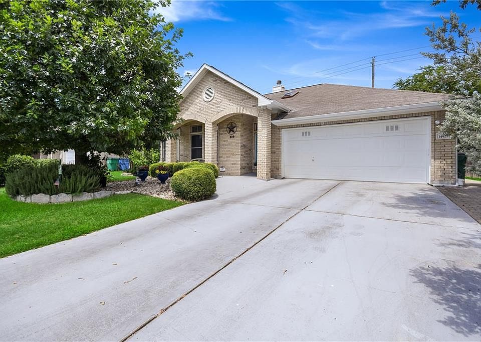 Bright and open 4 bed, 2 bath, 1 story home in Wells Branch pool community. Tile and wood floors, open plan, skylight, beautiful kitchen w/tile counters, inset lighting and natural wood cabinets! Garden back yard oasis, low maintenance Xeriscaping, with large extended stone patio, walkways, babbling rock, waterfall, mosquito misting system. Entire outside painted this year! Privacy fence replaced in last 2 years. Washer/dryer and fridge included! Pride of ownership. Must see.