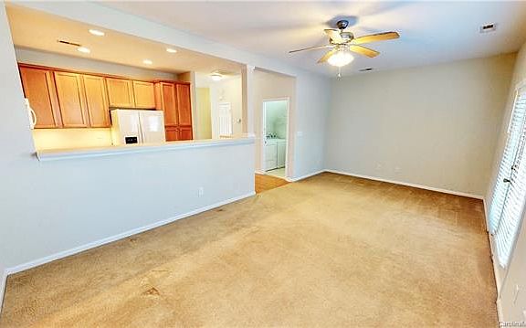Spacious updated 3 bedroom townhome in convenient Ballantyne location! Spacious kitchen with newer fridge and dishwasher, 42" maple cabinets & under counter lighting. Large Great Room open to kitchen with access to private patio at rear. Upstairs includes a large suite with walk in closet and adjoining private bath and 2 additional rooms with access to a private balcony. Washer and dryer included. Water included in rent. Ample parking for tenants and guests in outside parking spaces. Walk to Publix, shopping and restaurants or a quick hop to I-485. Currently zoned for Ballantyne Elementary, Community House Middle and Ardrey Kell High, though tenant must verify schools.