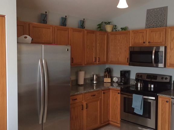 Spacious Fully Furnished 2 Bed 2 Bath + Den New Berlin condo with 2 Car Attached Garage. Large upper level unit w/vaulted ceilings. Kitchen features Stainless Steel Appliances, granite counters, & Breakfast Bar. Adjacent Dining Rm area opens to the Living Rm featuring a gas Fireplace & access to the walk-out Balcony. Large Master Suite includes a Walk-in Closet & private Bath. Good sized 2nd Bedroom & 2nd Full Bath with Walk-in Shower. Full sized Laundry/Utility Room. Large 2 Car Attached Garage. Easy freeway access. Unit comes fully furnished & available for a short term lease, 6-9 months.