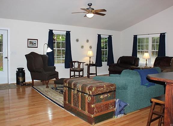 This well loved home has plenty of room for you to stretch out and enjoy life on it's tucked away 2.1 acres of hardwoods. The great room combines the den & kitchen into one 25x23 foot room with a cathedral ceiling, hardwood floors and a huge island. Built by Don Trumble in 1999 this home features an encapsulated crawl space, 2 bedrooms, 1 full & 1 half bath, flip clean gutters, front porch, back deck, 2 sheds one with a lean-to, large gavel parking area, newer appliances, and hardwood floors in the great room, kitchen and hallway. Hurry to see this one because I don't know of any others like it.