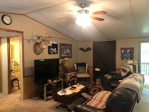 Nice Mountain Getaway - are you ready to get away from all the hustle & bustle; then check out this 3 Bd / 2 Ba doublewide on a level lot with privacy. Large Living Room with vaulted ceiling & fireplace plus open to the Kitchen. Dining area off Kitchen & Living Room as well. Kitchen with Breakfast Bar. Split bedroom plan with Master Bedroom w/ensuite and walk in closet. Two additional bedrooms and hall bath are on the other side of the Living Room. Awesome covered Front Porch to enjoy the outdoors and occasional wildlife. Back deck with access from the Living Room. Detached single carport and outbuilding for storage. Furniture is negotiable. Spring water. Owner has Frontier landline and had DISH network in the past for TV. No drive-bys, must have a showing appointment.
