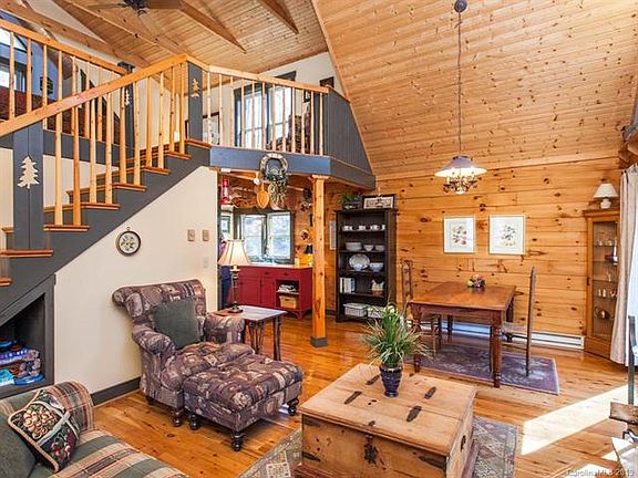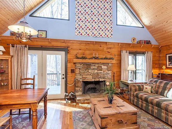 Charming, low maintenance, high quality cabin in immaculate condition. Great Room w/soaring vaulted ceiling, wood floors and beams thru-out, custom cabinets and architectural details, stone fireplace, & an abundance of windows. Just the right mix of painted walls and natural wood. One main level bedroom & one large loft bedroom. Walk-in tile shower. Easy to get to- just 2 minutes to Hwy 74- but very private. Walk to Cleghorn Country Club's golf course, tennis and pool. 8 minute drive to Tryon International Equestrian Center. Home is part of the River Ridge community but located outside the gate. Rights to use river launch & community park in River Ridge. Dried stack, tongue & groove log home does NOT require the caulking or maintenance of other log homes. All trim/eaves are pressure treated to prevent weather/insect damage. NEW ROOF in 2019 w/silicone ice shield. Wooded, easy care property comprised of 2 separate lots. Owner will sell furnishings/decor. Buy it all for easy move in!