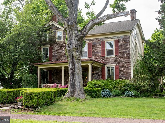 Charming 13-acre property located in the heart of Buckingham, PA, c1850. This beautiful stone Bucks County farmhouse estate is a private oasis surrounded by mature plantings and trees. The Main house consists of 4 bedrooms, with attic space which could serve as a fifth bedroom and sitting room with additional room for storage. Formal living room with original stone fireplace, a family room and a formal dining room all with original random width hardwood floors. The farmhouse kitchen with the adjoining sunny dining area and built in bar is a wonderful entertaining space leading onto the deck and the in ground pool and gardens. The gourmet kitchen is a chef's dream w/ wolf gas range, double mounted wall oven, and refrigerator, as well as an enormous travertine island and custom cabinetry. Next to the main house is a 2-bedroom carriage house with the 3rd bathroom, kitchen, living area which would serve as a wonderful guest house or home office space. Adjoining the carriage house there is a one bedroom apartment which can be rented for income if desired. There is a beautiful refurbished bank barn with horse stalls and workshop. Two large fenced pastures with additional areas that could be fenced for those with multiple horses. Additional buildings consist of an original spring house, pump house and covered parking area for farm equipment or cars. Don't miss this opportunity to own a truly unique piece of Bucks County history.