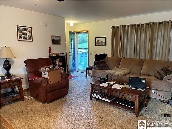 Ranch style modular built in 2013, move in ready! Two bedroom, two full baths with lots of storage. Open floor plan with living room, dining area and kitchen. Kitchen has hard wood cupboards, small island and pantry. Master bedroom with spacious bathroom and two closets including a large walk in closet. Second bedroom, another full bath and laundry room. One and a half car garage with an over head door to drive through for easy access. Small front porch and deck out back to enjoy the fall season. Kellner water system for the entire house.