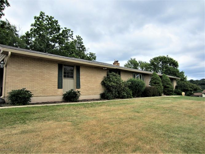 Beautiful larger Three Bedroom Ranch Home on 2.29 acres in the Abington Heights School District. Home features 3.5 Bathrooms, Modern Kitchen, Breakfast Area with fireplace, Natural Gas Heat, large sitting area Sunroom, Living Room and Dining Room with Hardwood Floors. Lower Level has Family Room, Kitchenette, extra rooms for expansion, electric baseboard, separate entrance from Country Club Rd access. Rear of property borders Summit Hills Golf Course. Property features Heated 30x30 Pole Barn with 2 overhead doors, lift, and electric, accessed from Country Club Rd.
