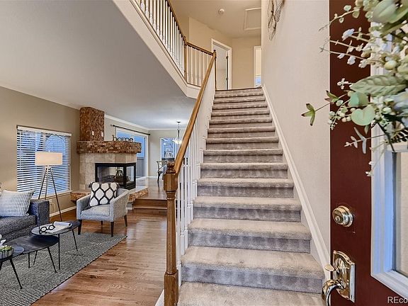 Beautiful 3 bed, 3 bath in the Village in Highlands Ranch. Step inside and find beautiful hardwood floors in the light and bright living room featuring a 3-sided fireplace. As you continue, you'll see the dining room on the other side of the 3-way fireplace that opens to the low-maintenance backyard and patio. The kitchen offers a huge island with seating space, gorgeous wood cabinets, granite countertops, tile backsplash, and stainless appliances. The main floor also offers a powder room and laundry room. Upstairs, you'll discover the large loft space which would make a great office, teen space, or play room. The upper level also features the primary suite with an ensuite bath offering double sinks and an oval garden tub. 2 additional bedrooms are on the upper level, as well. The fully finished basement has a family room with a murphy-bed that's perfect for guests, as well as a storage closet, utility room, and 3/4 bath. Great low maintenance yard! Fantastic location close to schools, parks, and dining with easy access to e470 and Chatfield reservoir.