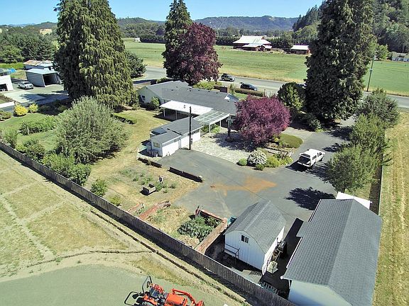 Great location just minutes from Roseburg. Well built home with 3 bedrooms, living room & family room. Large kitchen plumbed for gas with Quartz counters & lots of cabinets & storage. Thermal pane wood windows. Almost an acre with fruit trees & class 1 river bottom soil for gardening. Umpqua Basin Water plus well for outside irrigation, automatic sprinklers. High efficiency heat pump for heating & air conditioning. 2 shop buildings.
