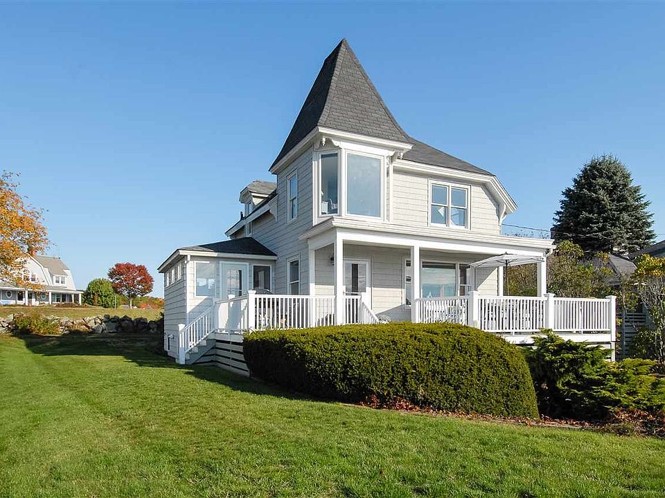 Enjoy unobstructed views of the Atlantic Ocean from every window of this 1920's Victorian set proudly on a knoll overlooking Foss Beach. This pristine, sandy beach is only steps from your front door. Extensive renovations include updated heating, HW and electrical services, refinished hardwood floors and beautiful fieldstone fireplace. Outdoor entertaining or relaxing is easy on the 14'x17' wrap around front porch with amazing ocean views. Or enjoy a BBQ on the adjacent 8'x16' side porch. Bonus-1st floor bedroom and bath and an outdoor shower. Truly a magnificent location for your new beach home! (Note: no longer a shared driveway as aerial photograph suggests in mapping)