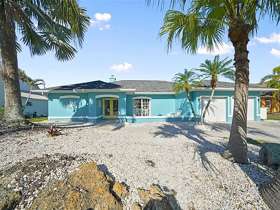 You will enjoy this newly remodeled home from inside out. The fresh blue color catches the eye of many while the soft yellow doors guide you inside. You will be in awe of the space this open floor plan home provides. The great room combines the dining area, kitchen, dinette area, and dinette all together. The size of the master bedroom will leave you speechless, as there is room for an office and sitting area. The master bath has newer vanity with double sinks and his and her closets. Even the guests bedrooms in this home and large enough for king size beds and so much more. So let's talk about updates, all the flooring replaced in 2018, new roof in 2018, exterior painted in 2018, both bathrooms redone in 2022. Complete kitchen remodel in 2022 with all soft close drawers and cupboards highlighted by new granite. Water heater new in 2022. Electric pool heater in 2019, pool pump replaced 2022. Move right into this beautifully remodeled home and live the Florida lifestyle in the highly sought after Deep Creek community which has everything you need from banks, beauty salons, restaurants, grocery store. All conveniently located close to the interstate.