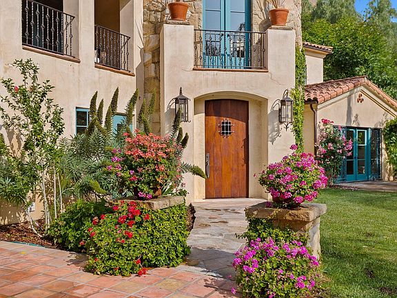 Through the gates, over the bridge & up the private driveway you'll stumble upon a true Santa Barbara Spanish Oasis. Custom built in 2006, 1493 Sycamore Canyon rests on 1.45 lush acres and offers 5 generous bedrooms and 5.5 bathrooms totaling nearly 6,000 sq/ft of livable space. Upon entering, you'll notice the volume created by a beautifully engineered tower foyer that gives you a true sense for the custom details to follow. The ''Chef's'' kitchen boasts handmade cabinetry, high-end appliances and a large center island that opens up naturally to the family room. Located on the ground floor you'll find the primary bedroom with a set of French doors that lead to a private patio and garden area. The grounds are peaceful & plentiful with over 200 fruit trees, pool & entertainers cabana, 3 car detached garage and a gym area. This property has it all and is great for those that love to entertain in a private & peaceful location. 4 fireplaces total, laundry room upstairs plus stackable laundry in pantry, 200 fruit trees including avocado, citrus, apricots, peaches, apple.