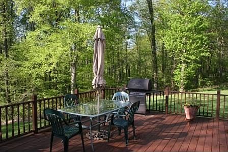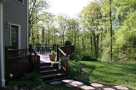 Escape the Ordinary! Tired of track house 2 story's with no personality? Come see this custom residence on 1,75 private acres. This home features a Bonus not available in other homes in the price range. A beautifully finished daylight basement with a full bath, kitchen, hobby island, exercise/5th bedroom, French Doors to back yard and storage areas. As soon as you open the front door you'll immediately feel "at home". In addition to all the windows that give an abundance of natural light this home has an incredible lighting package that includes the Christmas control option. You'll love the natural finished wood floors. The dining room can hold a large group and has an open ceiling and balcony. The island kitchen has 42 inch cabinets, is fully equipped and opens to a comfortable family room with gas fireplace and the sun room with tiled floor, skylights and access to the rear deck. The sun room overlooks a backyard sanctuary that is framed by a curtain of green trees and lush foliage. The bedrooms are well proportioned and the master bedroom area is a dream. It has a vaulted ceiling and hardwood floor, walk in closet, and storage areas. The master bath is exquisite with a custom double vanity, jetted tub, tiled floor and stall shower. This home has been maintained at the highest level and has many recent updates. The sellers are offering a home warranty and are open to all types of financing options.