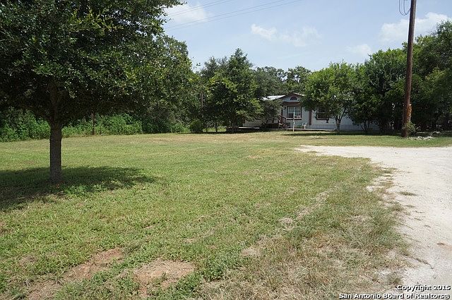 Enjoy the quiet of the country living, while being conveniently close to the city of Seguin! This 3 bedroom, 2 bath double wide sits on nearly 7 acres and offers a split bedroom floor plan and vaulted ceilings. The kitchen features a custom built island, built-in double oven, smooth cook top, and ample cabinet space! The master bath features a walk-in shower, garden tub, and double vanity. Outdoor amenities such as a creek, stock pond, chicken coop, and large work shop, make for the perfect country life!
