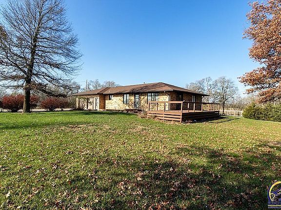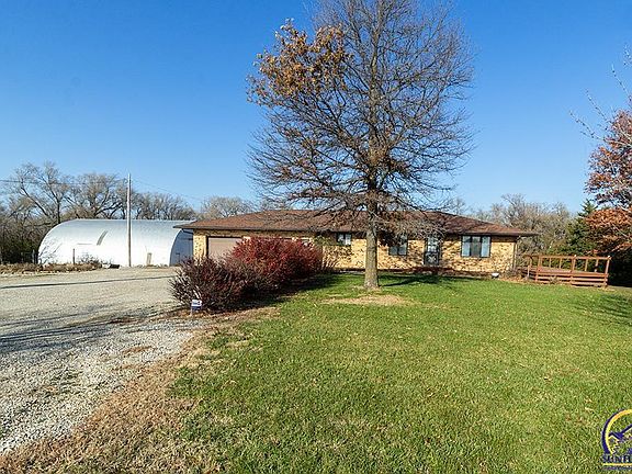 Great Location on 9+acres!! Close & easy access to Topeka on paved road. Well cared for low maintenance brick ranch with a large outbuilding. Fencing for livestock plus a good sized pond. Landscaped yard with flower beds & perfect garden spots. Spacious kitchen has ample space with quality Custom Wood cabinets. Pella windows along with Convenient main floor laundry & complete with central vacuum system. Partial unfinished basement with potential for additional bedrooms &/or storage, etc. Oversized & clean 2 car garage with easy pull down attic access. Newer roof. Borders Royal Valley & Seaman School Districts. A must see property!