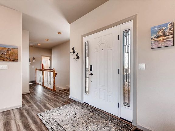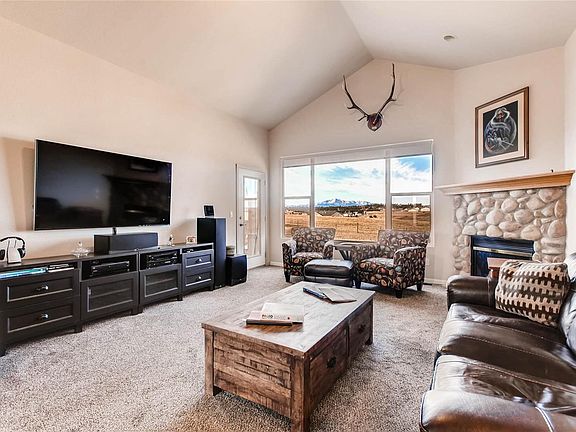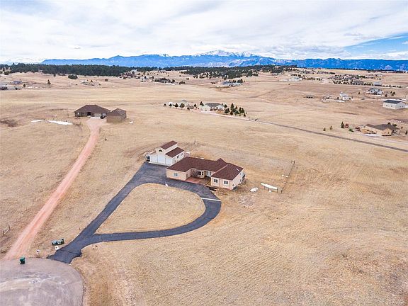 Welcome to this one-owner, custom ranch home with stellar Pikes Peak views, zoning for horses, and great 20 minute commute to Colorado Springs and 50 minute to Denver. Providing 4 bedrooms, 4 bathrooms, 3-car attached garage, 1,260 square foot (40' deep) shop with 16' door, this home has room for all your needs. Upgrades include gorgeous quartz countertops and two-tone cabinets in the kitchen, sunroom, vaulted ceilings in the living room, wet-bar downstairs, and two gas fireplaces! This modern, country home is a must see! Located on grassy acreage overlooking the Peak, this custom, stucco rancher has been totally updated and is in excellent condition. Enter in an array of windows that just brings the outside in! Beautiful, sunken living room with gas fireplace, a large, formal dining to the left and then onto the custom kitchen with SS appliances, subway backsplash, two tone, upgraded cabinetry, custom quartz counters, and another large morning room or breakfast nook.