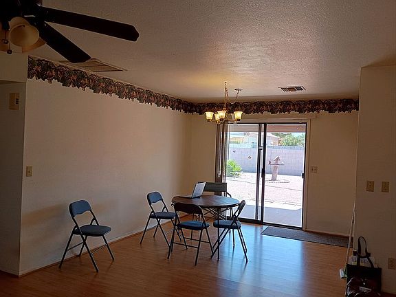 Comfortable 1,026 sq ft 2 bedroom/1 ¾ bathroom home in a friendly neighborhood. Structurally solid home. Needs interior refresh (some flooring and paint). Refrigerator, washer, and dryer stay. Convenient kitchen, roomy dining and living rooms. Inside laundry room. Large covered back patio w/ lights and outlets. Covered front walkway. 1 car garage. Expanded driveway. Built 1989. Immaculate, large front and back yards with new and established plants (ocotillo, bougainvillea, Mexican bird of paradise, Mediterranean dwarf palm trees, and sago palm trees). Block fence. Quiet neighborhood. Low traffic. Zestimate is $221,400. Asking $180,000. Estate sale. Sold as is. Looking for a contract before June without a realtor. After May, listing with a realtor at a higher price. Call for appointment to see.