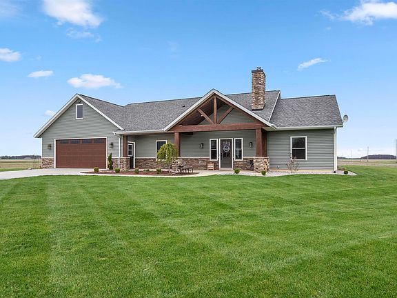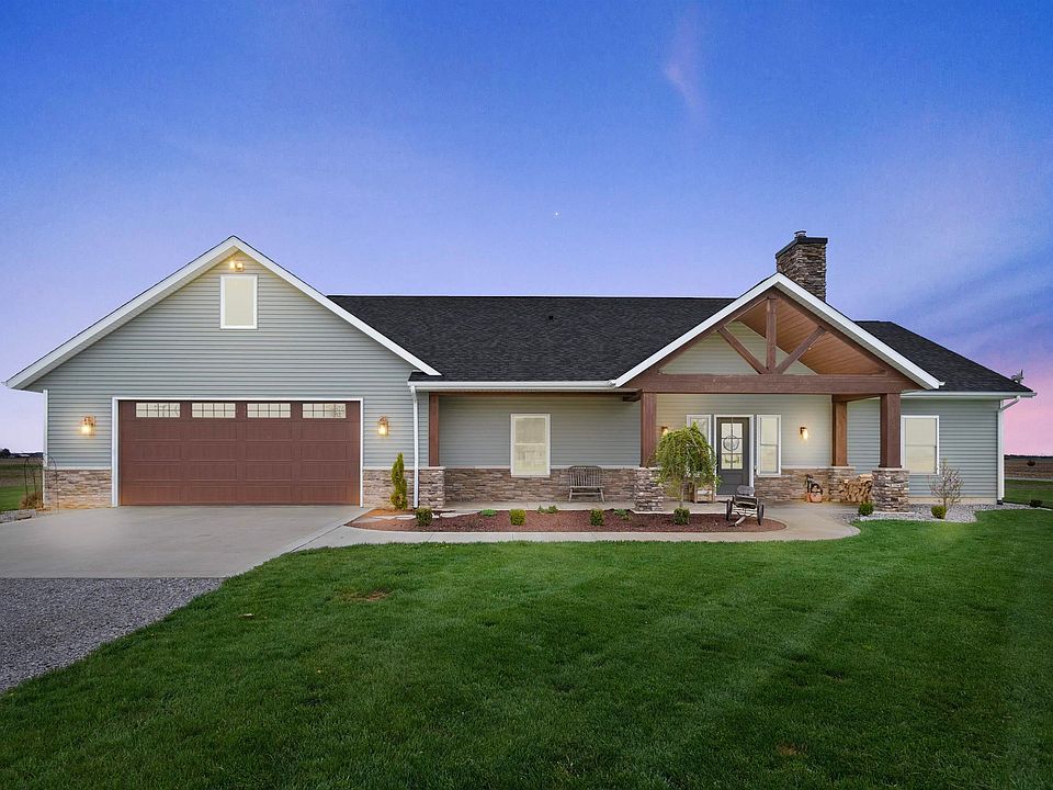 OPEN HOUSE SUN 6/5/2022 1-3 PM. STOP the build job!! This Spectacular 3 yr old ONE-OWNER Gem is just waiting for your arrival. Enjoy the hassle-free serenity of farm country on this one-of-a-kind estate situated on 2 1/2 acres of peace and tranquility. All the amenities you desire! Experience an extremely livable and open floor plan with over 2000 sq ft of living space on the main floor. Modern CHEF’S KITCHEN opens into a VAST Dining Space creating an area both beautiful AND functional! This marvelous kitchen highlights an abundance of Cabinetry, Solid Srfc sealed Concrete Countertops, Walk-in pantry, and Stainless Steel appliances that remain with the home. Concrete floors can stay as is, or allows new owners to install new. Master Bedroom boasts walk-in TILE SHOWER, immense w-in closet and more! Split bedroom concept with 2 more nice sized bedrooms on main. GREAT ROOM boasts Cathedral Ceiling and COZY wood-burning FIREPLACE which can heat whole house by itself on cold wintry nights. Upstairs boasts 2 GI-normous finished living spaces and another 12x12 storage room up as well. Attached 1000 sq ft. garage is perfect for storing vehicles and workshop. Easy-Breezy entertaining outside on expansive 480+ sq.ft. rounded concrete rear PATIO. STURDY BONES-- no shortcuts! 16" on center framing. Foam and batted insulation. 400 amp svc.. Luxury living in the country awaits! More pics Mon eve.