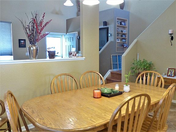 Perfect place to start in this wonderful contemporary 2 story in The Villages at Buffalo Run. Home has main floor master suite for privacy. Double volume ceiling in great room which has gas log fireplace for toasty winter evenings. Large open dining room open to LR & Kitchen. Kitchen sports maple cabinets, tile counters & stainless steel appliances. Guest bath located in hall. Large master w/walk in closet & full private bath on main. Upstairs is a huge loft/play room or den, 2 guest bedrooms & full bath off the hall. Laundry location also located on upper level w/cabinets. Contemporary colors throughout. Wood laminate floors on main, stairs, & loft. Carpet in upper bedrooms. 5 ceiling fans. Central air. Large deck w/hot tub included--bring the champagne! Concrete tile on roof. Quiet location. Close to schools. Fast access to I 76 & 10 minutes from Brighton shopping center. This home is well maintained & move in ready. Show me and sell me. I'm ready for your family!