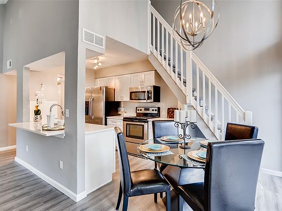 PENTHOUSE suite in Cherry Creek School District w/2 covered CARPORT SPOTS right in front! Completely updated. You are welcomed w/ a wide open floor plan flooded w/ natural light, VAULTED CEILINGS, a sparkling new kitchen w/ self close cabinets, quartz, SS appliances, & a WALKOUT PATIO perfect for entertaining! Two full bedrooms on the main, a large bath w/custom tile designs, & in unit washer/dryer hookups! The upper level contains a light & open OFFICE/LOFT AREA, and a 3rd private bedroom! Walk to Dry Dock Brewing, restaurants, and Cherry Creek State Park! Minutes from I-225/Parker Light Rail Station. This unit has it all for a very affordable price & LOW HOA!
