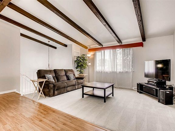 Light, bright, and well maintained, this spacious Bi-level located on a quiet cul-de-sac features 4 Bedrooms & 3 Baths with an Oversized 2 Car Garage. Upon entry you'll be welcomed by Vaulted Exposed Beam Ceilings that complement the Living and Dining rooms. The Eat-in Kitchen has been updated with Granite counters & chic back splash, New ceramic tile floor, Newer stove and refrigerator. A large wood covered deck adjoins the dining room, perfect for summer BBQs and relaxation. Fresh New Interior Paint from top to bottom, Brand New Berber Carpet throughout, and Stylishly Updated Baths. Lower level offers sizable Family Room w/ Brick Fireplace, Bedroom w/ Private Bath, and Laundry area. New Hot Wtr Htr (2018). New silent Garage Door (2018), New Roof (2017) & Fence (2017). Walking distance to Village Green Park and Gateway HS, and minutes to shopping, restaurants, schools, light rail, I-225, and DTC.