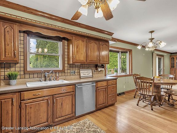 Welcome Home! This meticulously maintained 3+ bedroom, 1.5 bath ranch home located in the DeWitt School District sits on .6 acres, is completely move-in ready, and has a finished lower level! With close to 2300 sq. feet of living space, this home is spacious with two separate living rooms, a large open kitchen with fireplace, plus views of the fantastic private back yard with double tiered deck! The kitchen has a lot of storage, stainless appliances, tiled backsplash and an eat-in area with a bay window. The attached living room has a cozy fireplace and built-in's. This home has many upgrades including solid bamboo floors throughout. The updated main bathroom has double sinks, a bathtub AND a step in tiled shower with sitting bench and glass door attached to the generously sized first floor master bedroom. The other two bedrooms are on the main level and also good size and another half bath is on the main level for convenience. The lower level features a large family room area, possible 4th bedroom, and another room that used to be a salon, but would make a great office or additional living space. Tons of storage in this lower level including a space that would make a good workshop. The washer and dryer are conveniently located here as well. Attached 2+ car garage that includes a ramp for accessibility. The back yard is picture perfect and private, and features a landscaped area with wooden bridge with trellis and is fenced. So much value in this home, call for a tour today!