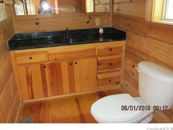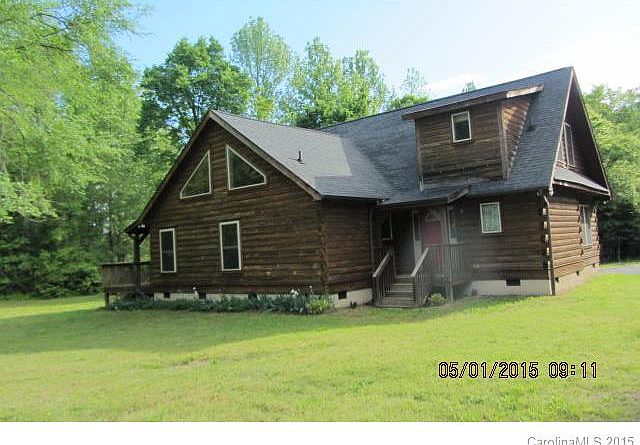 A Rare Find! Fabulous Log Cabin on a 1.2 acre lot only minutes from shopping,I-485, airport,restaurants.Wood floors,wood ceilings. Huge deck length of the house.Great Room with soaring ceilings open to dining and kitchen. French doors open up to the deck from main bedroom and great room. 3rd bedroom does not have a door and was used as a formal dining room but it has a closet and attached bath and can be easily converted back to a bedroom. SS appliances in the spacious kitchen