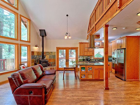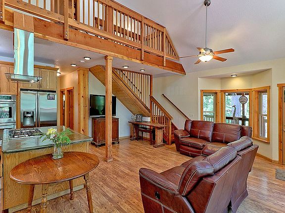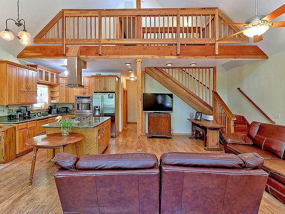 This awe inspiring home was custom built and has it all. The open floor plan includes vaulted ceilings and a breath taking wall of floor to ceiling windows. The chef's kitchen features custom built concrete counters, a large island with a built-in stove, overhead exhaust and a walk-in pantry. The downstairs bathroom is spacious and includes a claw foot tub and custom vanity. The upstairs master bedroom is a retreat unto itself. It features a private balcony, walk-in closet, a beautifully tiled bathroom with a jetted tub and separate shower. For convenience, you will appreciate the tank less water heater and central vacuum system. The exterior deck wraps almost entirely around the house. It offers creek and pond views and is perfect for relaxing or entertaining guests. This home is an incredible value and a must see!