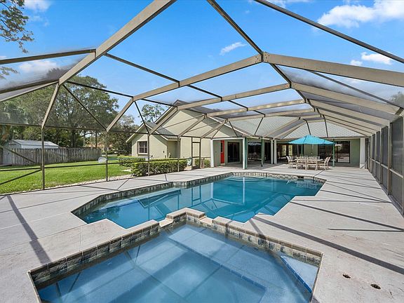 Welcome to highly sought-after Paddock Park 1, where luxury and comfort meet in one of the most desirable neighborhoods in Wellington with NO HOA. Virtual Images are provided for your Inspiration. This lovely property boasts a sprawling 1.425-acre Corner lot, complete with big circular driveway, 4/3.5+Office. Bring your RV/Boat and build up to a 1000 sqft Guest House. The spacious screened patio/pool area offers ample space for entertaining guests or simply enjoying the Florida sunshine. Virtual Images help to envision Simple changes to enhance the home with neutral color palettes and decor options. The exterior Virtual Images demonstrate the potential to add a Guest House or enhance landscaping, providing endless possibilities for customization to truly create your dream home. Insid this home offers an impressive 3143 sq ft of living space, featuring four bedrooms, three and a half bathrooms, and an office. The large, open kitchen and family room overlook the pool with great flow for entertaining. The 3-way split bedroom plan ensures maximum privacy, while the cabana bath is perfect for pool guests.