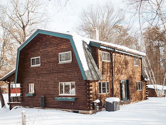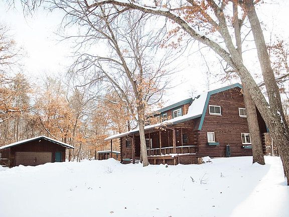 The residence features classic log construction, a welcoming covered front porch, and a functional layout suited for both everyday living or weekend retreats. A spacious mudroom supports an active lifestyle, while the level area off the back of the home presents an ideal opportunity for future expansion with a patio, porch, or three-season room. The surrounding acreage includes established walking trails and frequent wildlife activity, offering a true Northwoods feel without leaving town.