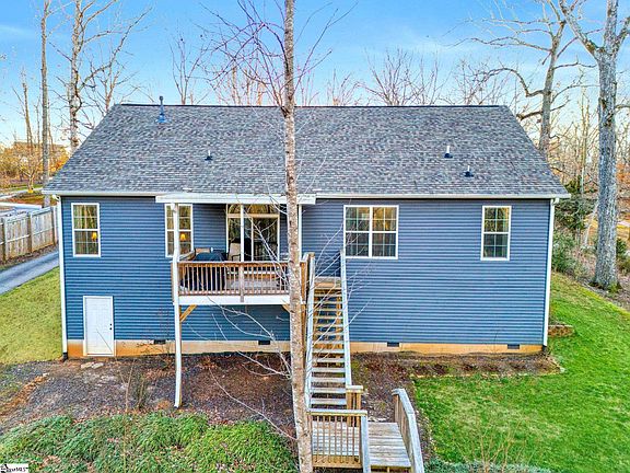 What a gorgeous property! This beautiful custom home was built in 2019 by a local builder, and is on the most beautiful large lot with wooded views! Enjoy peace and quiet, yet convenience to all that Greer and Greenville have to offer! The home has a split floor plan, lots of natural light, beautiful hardwoods and much more! 3 bedrooms, 2 bathrooms, plus an upstairs bonus/flex room! As you enter the home and look up, you will see a lovely custom wood feature ceiling. Large open family room includes 10 ft ceilings and a gas fireplace with shiplap accents. The spacious formal dining to your right features a shiplap wall. The kitchen has the perfect view to the back yard, and includes stainless steel appliances, a pantry, granite counters, counter seating, and a breakfast nook/coffee bar space! The huge primary suite has double tray ceilings, and an amazing ensuite bathroom with a double vanity, large garden tub, shower, and walk-in closet! Upstairs bonus room is perfect for a play room, office, workout room or additional guest space! New stairs were added to the deck after current owners' purchased the home, along with so much beautiful landscaping including: peach trees, blueberry bushes, tulips, daffodils, mums, hydrangeas, rhododendrons, irises, hostas, and rhubarb! Radishes, cucumbers, tomatoes, potatoes, snow peas, pole beans and squashes also grown extremely well on the property! The owners have taken such pride in their beautiful home and property, which is very evident. Located very conveniently to I-85 and Wade Hampton Blvd, yet feels a world away!