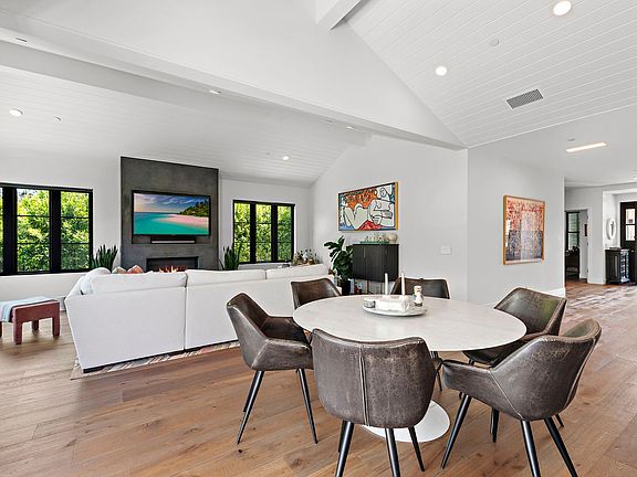 Found just minutes away from glistening sand and the lapping waves of the Pacific is this stunning contemporary farmhouse! This one-of-a-kind custom masterpiece boasts dutch door entryway with Ring pro doorbell, wide plank oak flooring throughout, open concept floor plan, elegant fireplace, white shiplap vaulted ceilings throughout, modern kitchen with sleek shaker style self-closing cabinets, Della Terra quartz countertops with tile backsplash, oversized center island with breakfast bar, dual farm sinks, and high-end stainless steel appliances including built-in Gagenau steamer oven and espresso machine, Italian Bertazoni 6-burner gas range with double ovens and pot filler, dual zone wine fridge, Bosch dishwasher, and Sub-Zero refrigerator, unique accents and lighting throughout with Lutron lighting system, large separate laundry room with utility sink and storage cabinets, primary suite with cozy fireplace and French doors leading to a private courtyard garden, primary bathroom features dual sinks, heated flooring, soaking tub, oversized shower with dual shower heads and a spacious walk-in closet with extra built-in storage space, large secondary bedrooms each with ensuite bathrooms, plus a powder room off the living area (4th bedroom could be ideal personal home office with French doors leading out to the charming front patio via separate entry). A wall of glass opening all the way up to the spacious outdoor living area with built-in BBQ, drink cooler, and sit up bar at the bi-fold kitchen window, perfect for indoor/outdoor entertaining and enjoying the lush surroundings and unexpected panoramic views of Bluebird Canyon. Clearly exceptional craftsmanship throughout! Bonus solar power installed for the Tenant's financial benefit of reduced electric bills despite running the dual zone air conditioning. Long driveway to two-car garage with electric car charging station and surrounded by well-appointed landscaping framing the entry way to this must see rare single story property! In the heart of the desirable Laguna Village area, this home is ideally located within walking distance to summer music concerts at Bluebird Park, the best beaches along the coast, and the Village "Hip District" with fine restaurants and boutique shops. A place where ocean breezes greet you and the ambiance of luxurious comfort surrounds you. Don't miss your chance to experience coastal living!