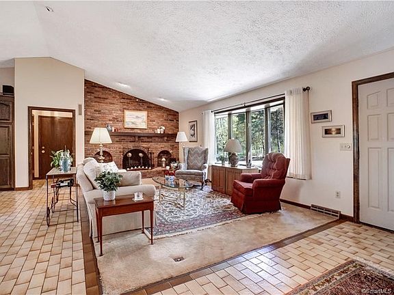 This home has wonderful curb appeal. When you enter the home you are in the open floor plan kitchen/dining area and living room with fireplace and vaulted ceilings. Kitchen has been been updated with granite counters and a nice center island. The fireplaced wall is a stunning statement. The master bedroom has a walk in closet and a recently updated master bathroom that you will love. This home has 3 full baths - a second one is in the hallway and there is a 3rd in the finished lower level with the 4th bedroom which has 2 closets and new carpeting. The lower level has a huge family room (the large sectional couch can remain and is a walkout with built in bookcases and a cedar closet. The unfinished 1/2 of the basement has a pool table that will remain and a 1000 gallon oil tank. Fill up once for the year The oversized 2 car garage could handle 4 smaller cars - or plenty of space for work benches. There is also a large closet in the garage and access to the backyard. This is a unique home that you will love