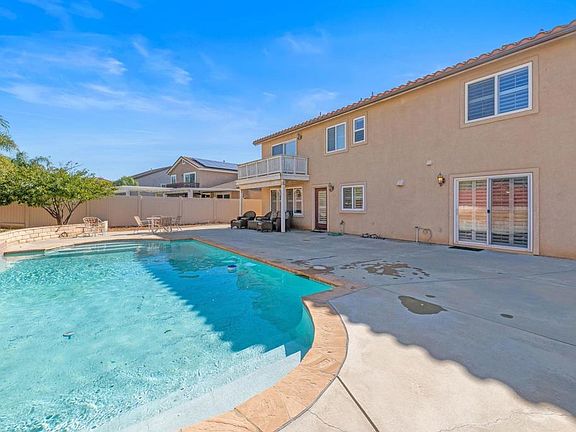 Discover the perfect blend of comfort and elegance at 1494 E. Shooting Star Dr, a beautifully appointed home ideally suited for family life and refined entertainment. This expansive property boasts five well-appointed bedrooms, an additional spacious office on the first floor, and 2.75 bathrooms, creating a versatile and welcoming environment. Upon entering, you will be greeted by a fluid layout that harmonizes living spaces with functional grace. The kitchen, equipped with ample cabinetry and sleek tile countertops, offers a practical setup for culinary adventures and casual dining alike. Plantation shutters throughout the home not only enhance its aesthetic appeal but also provide privacy and light control, enriching the ambiance of each room. Retreat to the serene primary bedroom for ultimate relaxation or utilize the large office for productivity without leaving the comfort of your home. The additional bedrooms are perfect for family, guests, or versatile uses such as hobby rooms. Step outside to a delightful pool area where leisure and entertainment await. This private oasis is perfect for hosting gatherings, enjoying a quiet swim, or simply relaxing under the sunny California sky. Nestled in a desirable neighborhood of Beaumont, your new home is just a stone's throw from local amenities including bustling shops, eateries, parks, and top-rated schools, ensuring that convenience is at your doorstep. Experience the lifestyle that 1494 E. Shooting Star Dr offers. Schedule your visit today and take the first step towards making this beautiful house your new home.