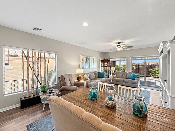 Welcome to 1494 Harvest Moon Ridge - Situated on an elevated lot at the top of Crescent Moon Subdivsion. Beautiful selections in design collaboration were used to create this "simple desert beauty". Natural light permeates this home from the east and the south. Soft earthy gray tones are found throughout the home in the vinyl plank flooring, paint color on the walls and varied sprinkles of color in the granite counter tops in the kitchen. Kitchen offers striking white cabinets - stainless steel appliances and windows around the kitchen dining area that bring in bright light for starting your day. Living room is surrounded with three large windows that shower natural bright light throughout the dining area and living room. Master Bedroom is spacious - with bay windows that offer views of the mountains. Master bathroom has classic white cabinets with subtle white counter tops. Back yard offers: extended covered pergola, brick paver patio, astro turf and VIEWS of mountains. HOME COULD BE SOLD FULLY FURNISHED on a separate bill of sale. Home looks like a model home - tastefully decorated. HOME HAS SOLAR. SELLER WILL CREDIT BUYER $10,000 at COE TOWARDS SOLAR PAYOFF.