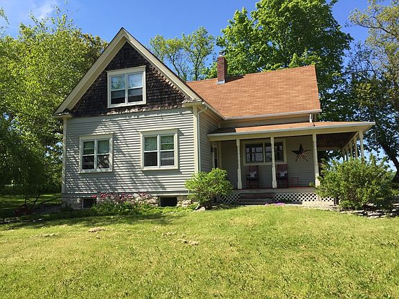 A true Door County farmhouse, built in 1894, complete with front to side wrap-around porch. Iconic Americana! The owners have been here for 40 years, and have slowly and carefully transformed the house while keeping its intrinsic farmhouse value. Oak hardwood floors, a gas woodstove and 7 ceiling fans are features of this 2 bedroom, 2 bath home. Outdoors you'll enjoy the covered porch and patio, and the huge box elder trees. There's a circular driveway and detached 2 car garage. This property is a real charmer! 17 acres of this parcel are being farmed, and are Use Value Assessed.