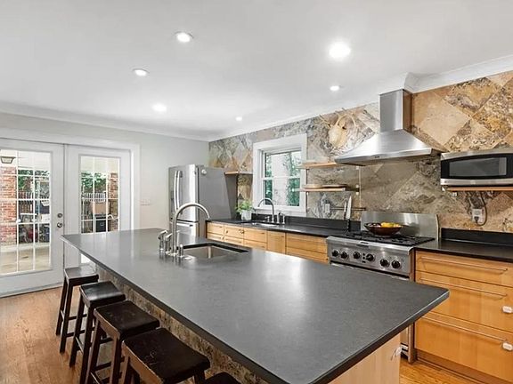 This charming home boasts an alluring brick exterior with a two-car carport, creating an inviting ambiance within a highly desirable neighborhood, mere minutes away from Emory, CDC, and prestigious schools. Its proximity to Lenox Mall, various shopping options, and convenient interstate access further enhance its appeal. The ranch-style architecture of the home, complemented by picturesque gardens, sets a captivating tone as you approach. Upon entering, you are greeted by a spacious open concept kitchen and breakfast area, fostering a warm and inviting atmosphere. Adjacent to this is an eclectic dining room, followed by a generously sized living room, followed by the owner's remarkable record collection nook. French doors in the kitchen provide access to a sprawling screened porch, offering serene views of the wooded backyard. Adjacent to the porch is an exposed deck, providing an idyllic setting for outdoor grilling and entertainment. A clearly marked path, labeled as AirB&B, leads to a private courtyard, revealing the mother-in-law suite located on the lower level. Upstairs, the hallway guides you to the expansive primary bedroom, showcasing a remodeled private bathroom featuring subway tiles and a shower. Another generously proportioned secondary bedroom awaits, complete with a fully appointed bathroom, boasting a tiled shower, bathtub, and a stylish pedestal double sink. The third bedroom offers versatility, serving as an ideal space for a home office, playroom, or nursery. Basement includes a private-entry apartment with bedroom, full bath, and kitchen offering the potential to generate supplementary income. The fenced and gated backyard encompasses an open yoga shed, providing a tranquil haven for relaxation, along with its serene zen path. This captivating property invites you to explore its many possibilities and make it your very own.