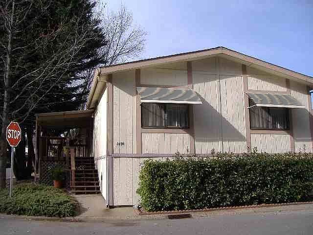 Wonderfully maintained 3 bedroom 2 bath home with split floor plan in the mobile home park of AppleTree Village. Vaulted ceilings in the living room and dining area lend to the airy and spacious feel of this home. The L-shaped kitchen features a 1-year newer floor, counter top stove and dishwasher. All bedrooms feature floor to ceiling closets and a separate laundry room offers extra room for storage. Dual pane windows with vinyl vertical blinds throughout, plus renewed window and door stripping, help to keep this home well insulated. Outside, the 2-car tandem carport has a newer roof and the wooden shed offers built-in shelves for even more storage. Relax on the covered front porch with extra wide steps which could easily be adapted for a ramp. Owner may carry with good credit and down payment.