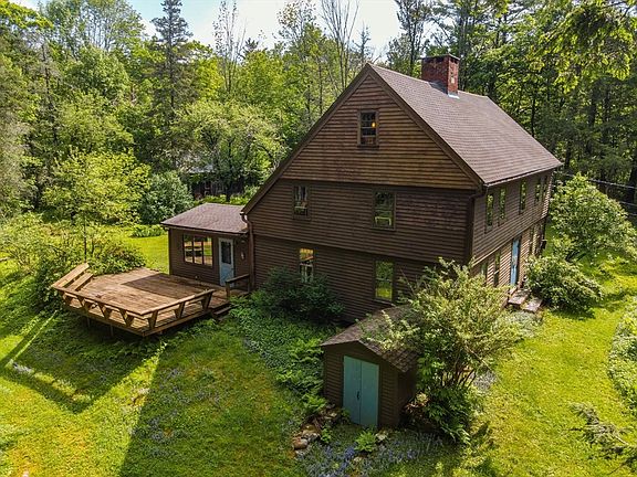 Dreaming of your own private country retreat? Come check out this colonial saltbox home nestled on over 20 acres built by Ezra Baldwin in 1763 and loved by the same family for almost 70 years. The first floor has three fireplaces, one with a Dutch oven in the back and another on the side. First floor living space includes a large living room, sunny dining room, an open kitchen and family room, a craft room, half bath, and a spacious sunroom. Many rooms feature wide pine flooring and lovely antique paneling. Upstairs are two large bedrooms (one with the fourth fireplace), a tandem back room that serves as a hallway, office, and craft room. Walk-up attic provides ample storage space. A deck off the sunroom is perfect for birdwatching and enjoying the sunset. Large barn and workshop for your hobbies or animals. Front roof was replaced in 2021. New Boiler and oil tank were installed in 2022.