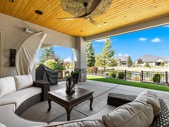 Located on the water, this exceptional home offers unmatched charm & elegance. You’ll be captivated by its stunning curb appeal—featuring custom garage doors, copper dormer, & iron entry door. Step inside to exquisite wood floors w/ stone inlay, setting the tone for craftsmanship throughout. Great rm boasts large windows that frame waterfront views, wood beams anchor the living space, & gourmet kitchen boasts Wolf appliances & Sub-Zero refrigerator. The island showcases chiseled-edge waterfall granite, & boxed ceiling adds a bit of style. Uniquely clad hallway leads to primary suite, highlighted by custom lighting & en-suite bath w/ custom copper soaking tub. The home includes a spacious guest suite & a generously sized office. Enjoy year-round comfort on the covered patio w/ tongue & groove ceiling, ambient lighting, 220-volt heaters, & remote-controlled sunshades. A boulder staircase w/ custom handrails leads to the water’s edge, w/ a sandstone patio & private dock. A rare opportunity for luxury living!