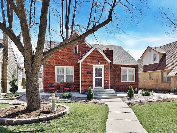 Set along a beautiful tree-lined street in Riverside, this classic all-brick English Tudor home is full of charm and character. Its outstanding curb appeal is highlighted by a manicured yard, lush landscaping, and a brand-new concrete patio and front porch. Inside, original hardwood floors, a spacious living room with a cozy fireplace, and large windows fill the home with warmth and natural light. The layout includes two bedrooms, one bathroom, and a formal dining room. The fully equipped kitchen features an eating bar for added convenience. Toward the back, a bright and inviting family/sunroom with a second fireplace offers additional living space. The fully fenced backyard includes a detached one-car garage and a storage shed, while the unfinished basement provides ample space for storage.